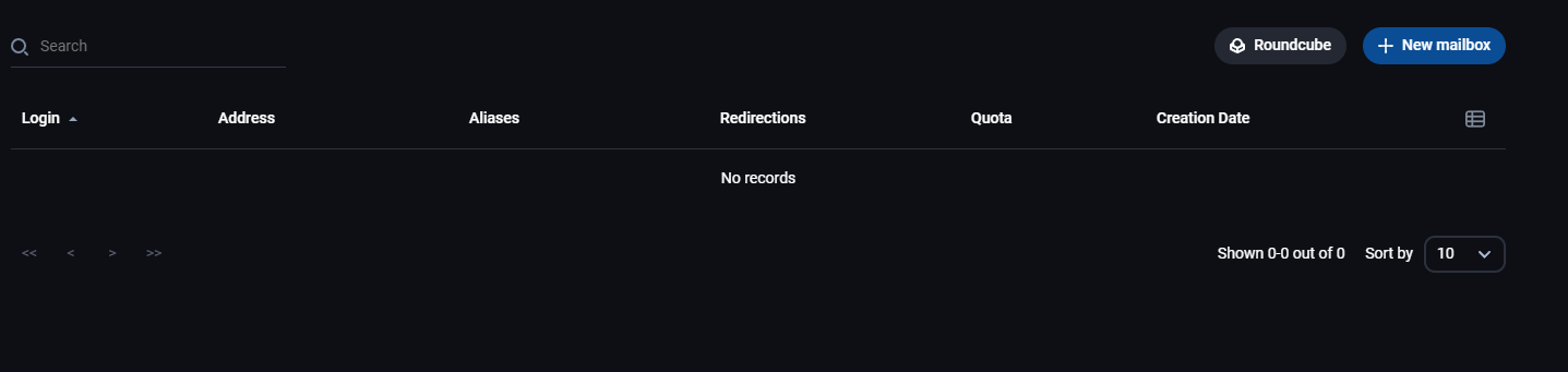 - Mailboxes - otvara stranicu gde se kreira i upravlja mail nalozima