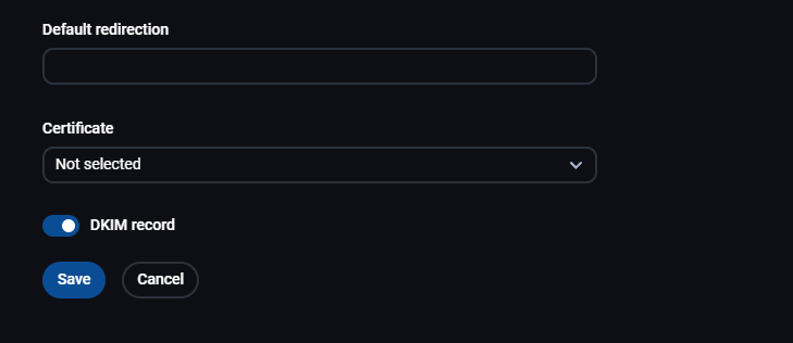 - Redirections - unosite željene redirekcije, odnosno forwardere za taj mail nalog