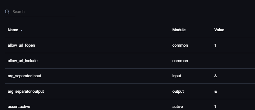 Kada se otvori stranica videćete izlistane PHP limite i polje za pretragu: