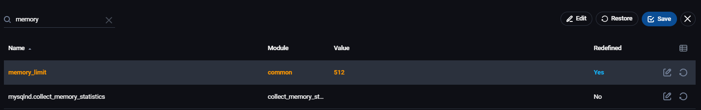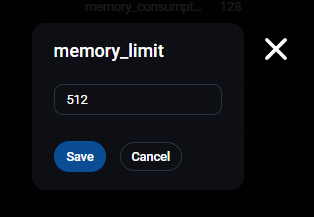 Kada kliknemo na olovku pojaviće se pop-up prozor u kom možemo upisati novu vrednost, u ovom slučaju za memory_limit: