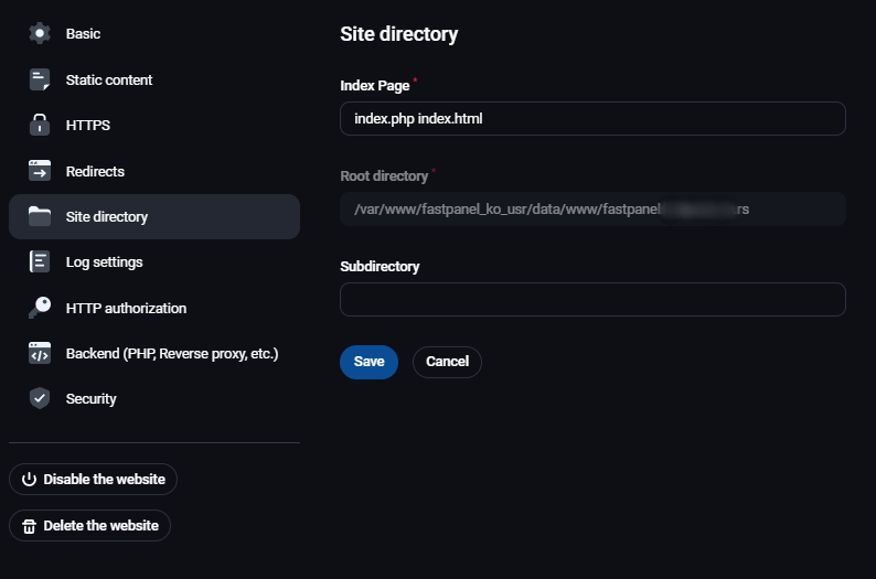 - Subdirectory - ukoliko želite da se sadržaj ipak otvara iz nekog podfoldera koji se nalazi u web root-u, ovde možete dopisati ostatak putanje