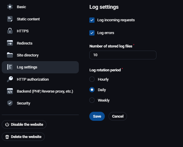- Log incoming requests - omogući logovanje zahteva ka sajtu