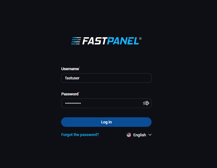 Pristupite FastPanel-u pomoću linka koji se nalazi u mailu i videćete login stranicu: