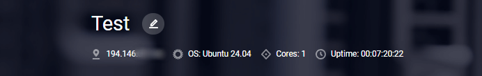 Nakon postavljanja naziva servera, podatak o IP adresi će se pojaviti ispod naziva sa ostalim podacima o serveru:
