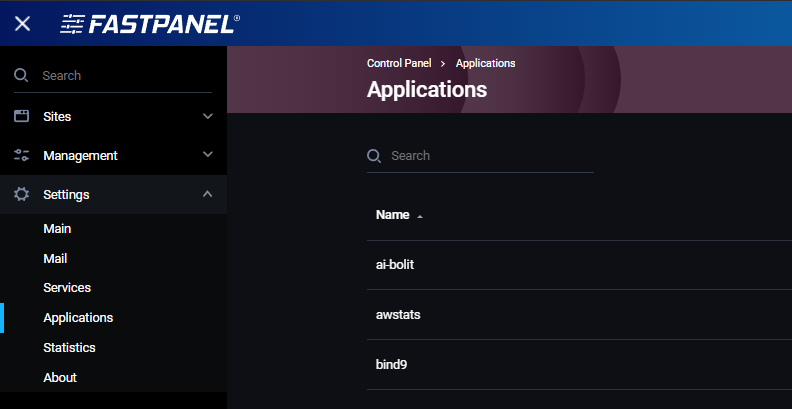 Da instalirate lokalni DNS server kroz FastPanel, prvo treba instalirati željeni servis za DNS server.