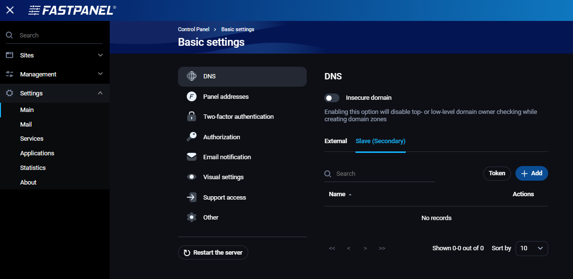 Instalacija lokalnog DNS servera u FastPanel-u