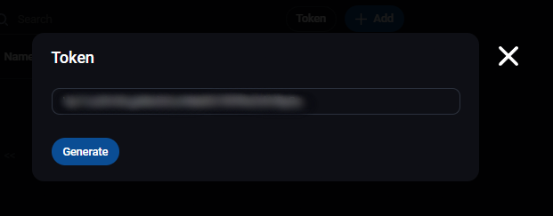 U slave odeljku postoje 2 dugmeta, Token i +Add. Treba kliknuti na Token i otvoriće se pop-up prozor. U njemu kliknuti dugme Generate da se generiše token koji treba kopirati: