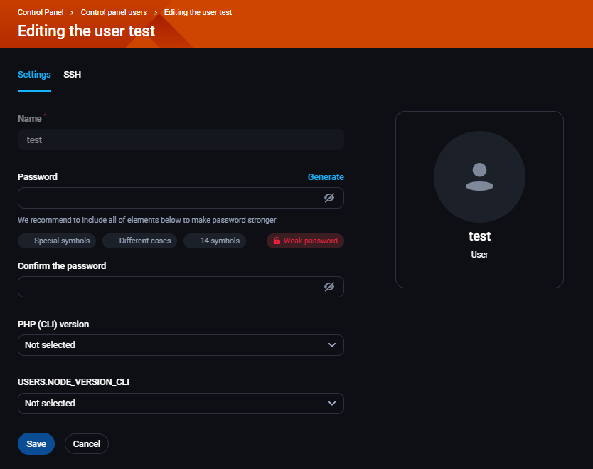 - SSH - SSH podešavanja za tog korisnika