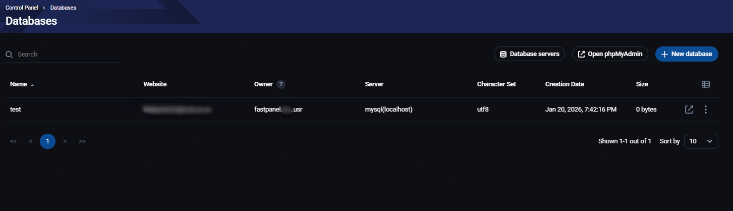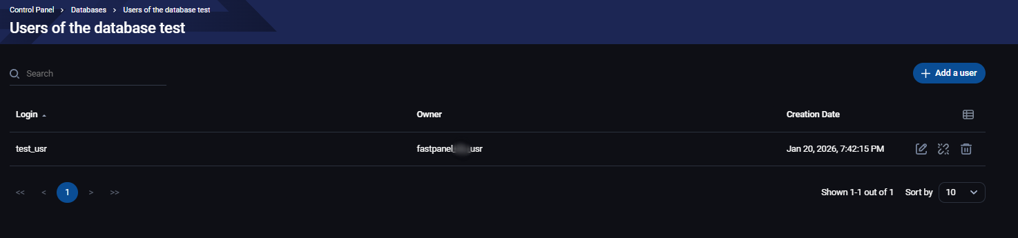 - Owner - FastPanel korsinik vezan za korisnika baze