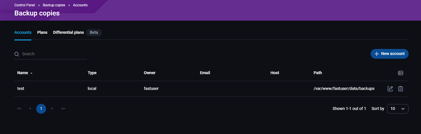 - Owner - FastPanel korisnik sa kojim je povezan backup nalog